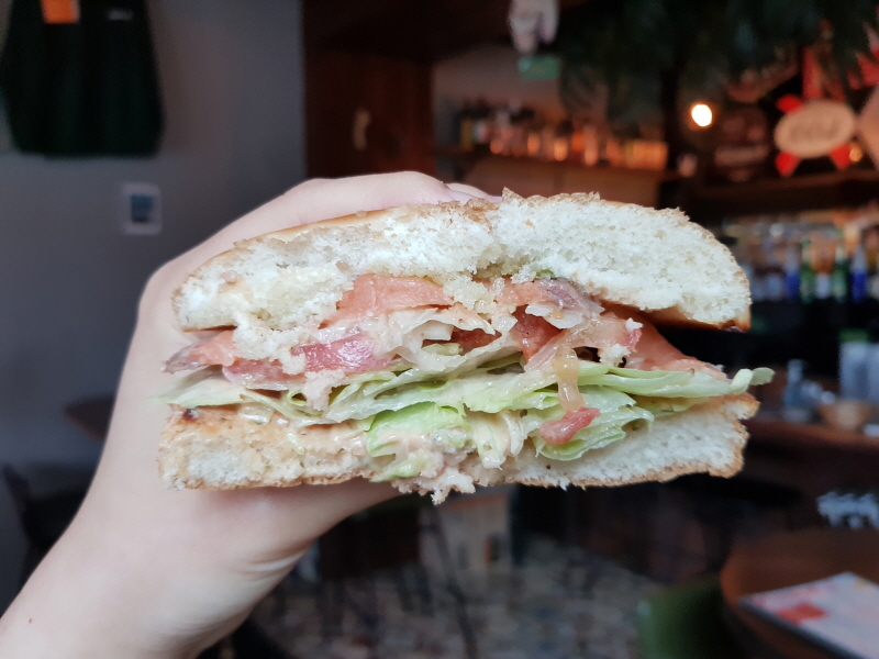 훈제연어는 오픈 샌드위치 같은 데 주로 쓰이는 메뉴라서 그런지, 그냥 샌드위치 먹는 기분이더라구요.