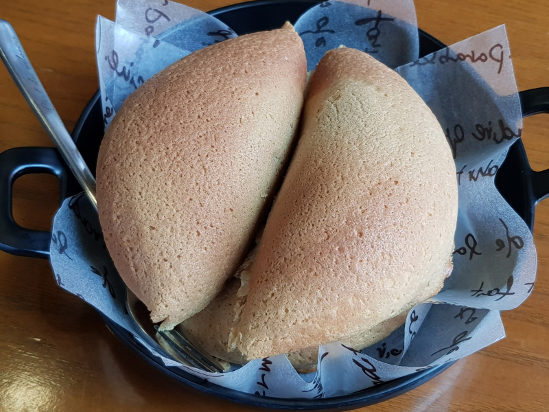 반으로 잘려서 나오는데, 따끈따끈하다보니 갓 구운 빵처럼 뜨거워요.