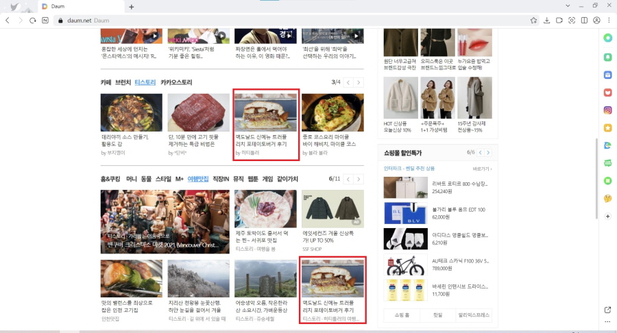 다음 메인의 알고리즘은 정말 알다가도 모르겠어요.