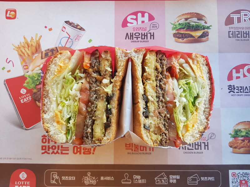 게다가 롯데리아는 데리버거, 불고기버거, 새우버거 같은 아담한 사이즈의 제품들이 대부분이에요.