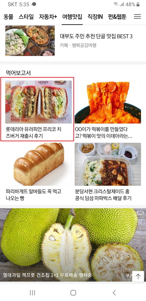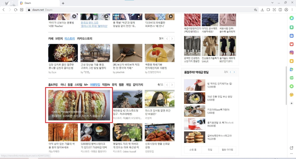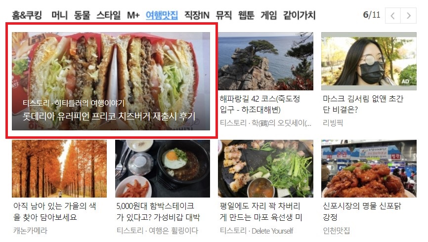 저는 평소처럼 당일 아침에 먹고 점심 무렵 쯤에 포스팅을 했는데, 그날은 햄버거 포스팅을 자주 하시는 다른 분의 포스팅이 메인에 올라왔거든요.