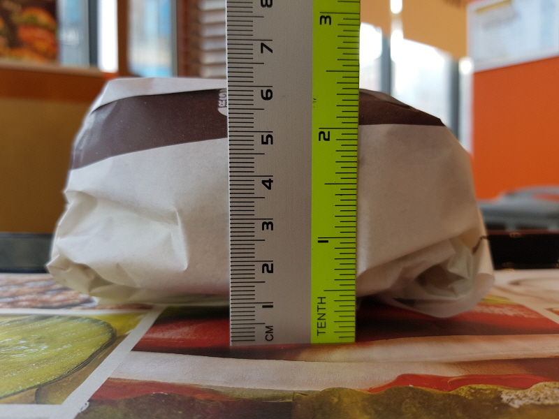 일반 와퍼와 동일한 사이즈이며, 따로 전용 포장지도 없어요.