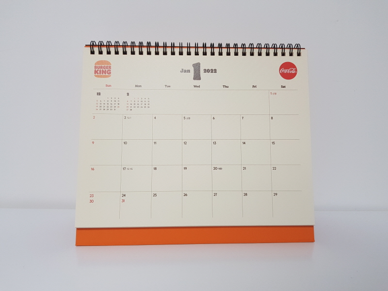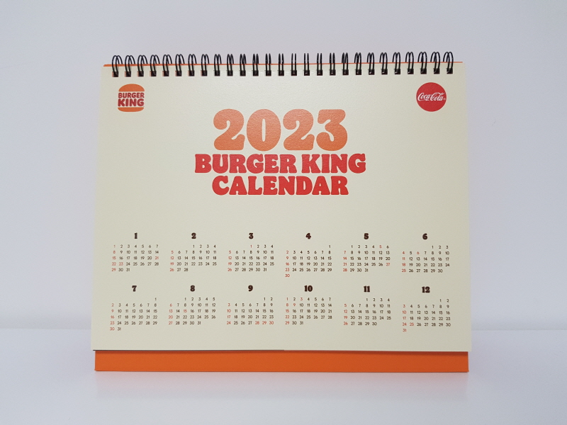 달력은 양쪽에 버거킹과 코카콜라 로고가 있는 거 빼고는 평범해요.