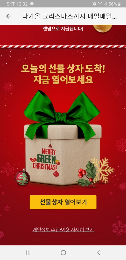조금만 스크롤을 해서 내리면 선물 상자가 나와요.