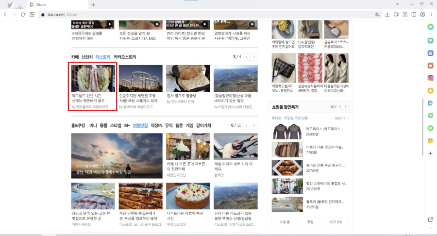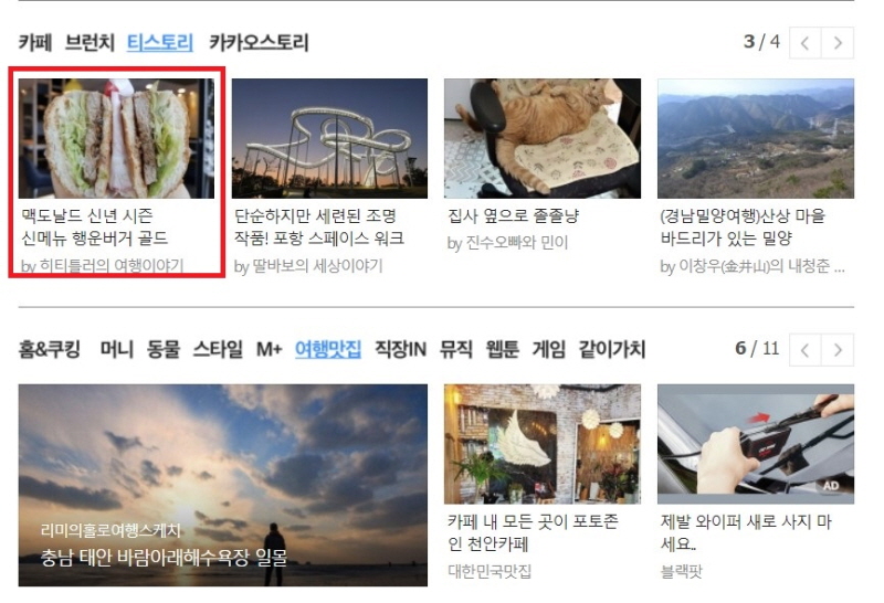 1월 4일, 제 블로그의 글이 다음 메인에 올라왔어요.