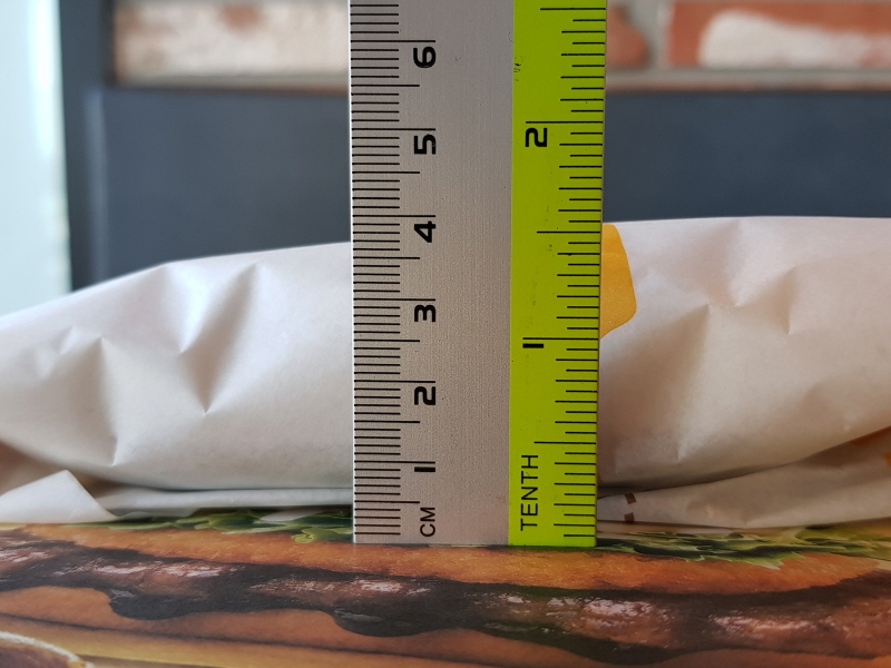 포장지는 전용 포장지를 사용하고 있는데, 에그불고기버거 - 불고기버거 - 더블불고기버거와 인쇄면을 구분해서 포장지를 새로 제작했어요.