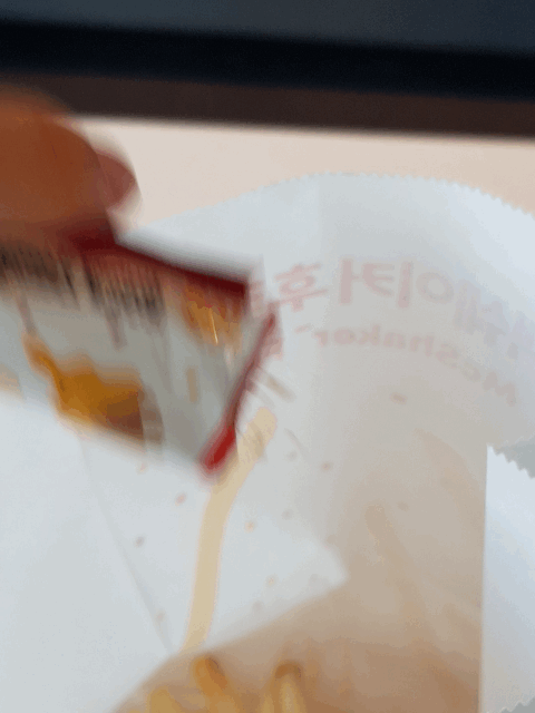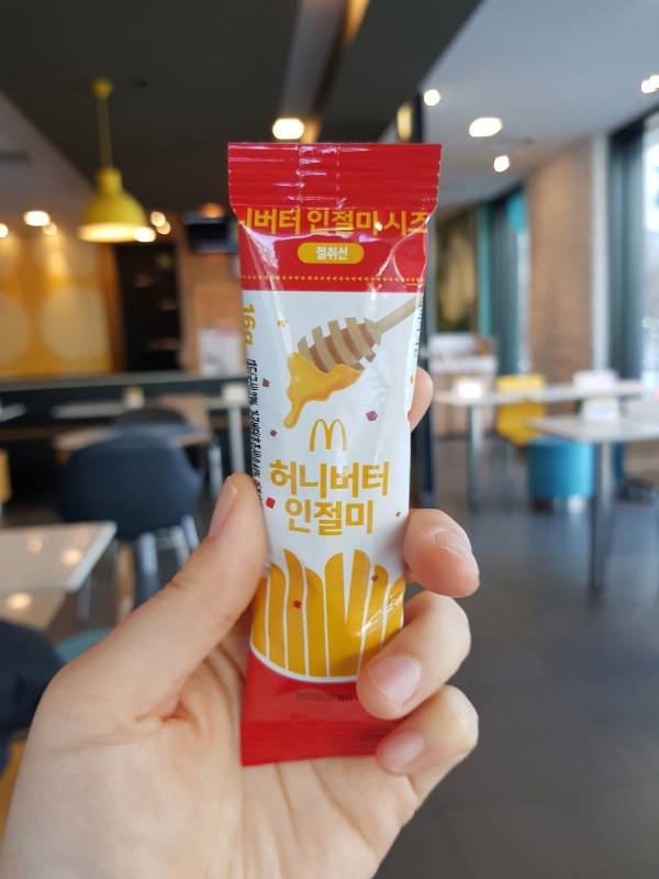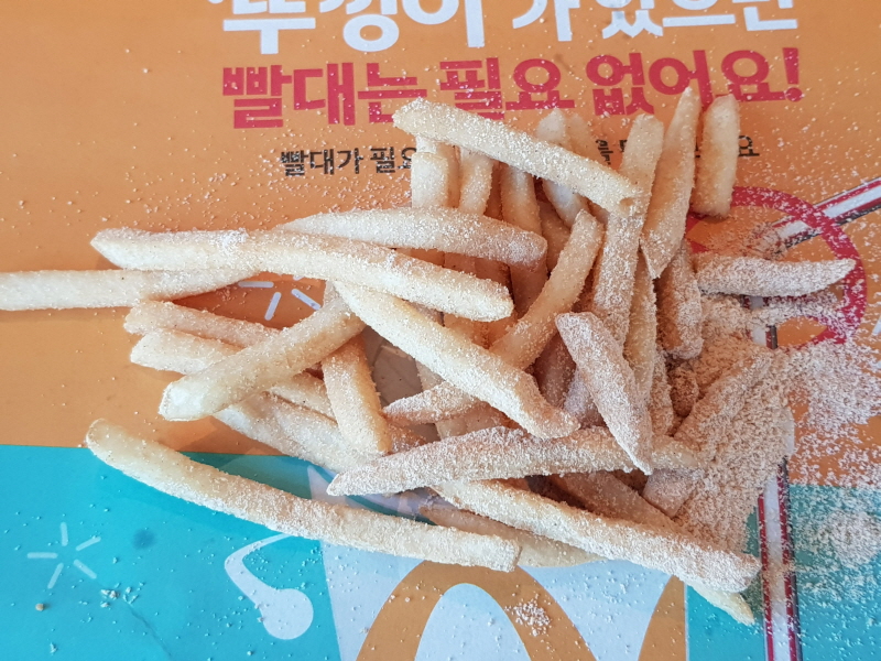 예전에 롯데리아와 KFC 에서는 봉투 아래 마감이 안 좋았는데 가루가 떨어지는 경우도 있었는데, 맥도날드 허니버터 인절미 후라이는 그런 불상사는 없었어요.