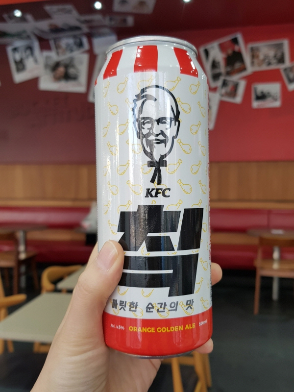 KFC에서 판매하는 치킨과 버거 종류가 기름기가 많다보니 그 느끼함을 잡고, 입맛을 깔끔하게 정리하기 위해서 산미와 향이 있는 상큼한 맥주를 만든 거 같아요.