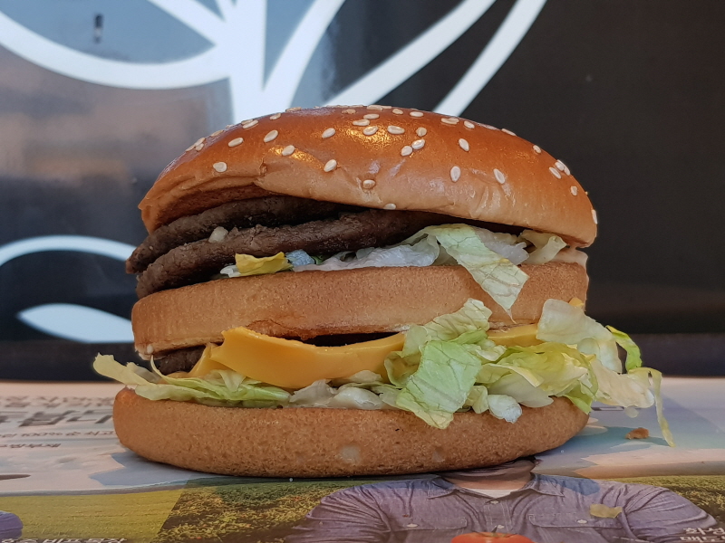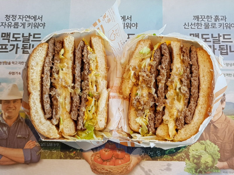 빅맥과 재료 자체는 동일한데 쇠고기 패티가 2장이 더 들어갔어요.