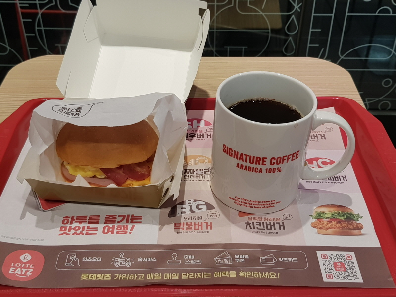 맥모닝은 비슷한 가격에 해쉬브라운까지 끼워서 세트 구성으로 판메를 하는데, 롯데리아는 콤보라서 커피만 같이 제공되거든요.