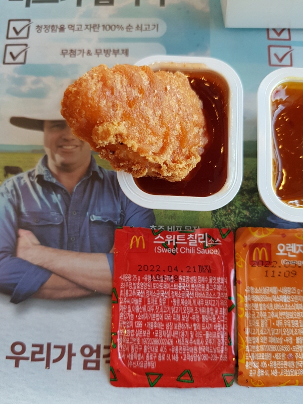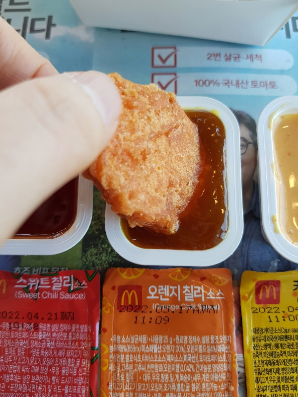 맥도날드에서도 스파이시 맥너겟 + 오렌치 칠리 소스 조합을 추천했고요.