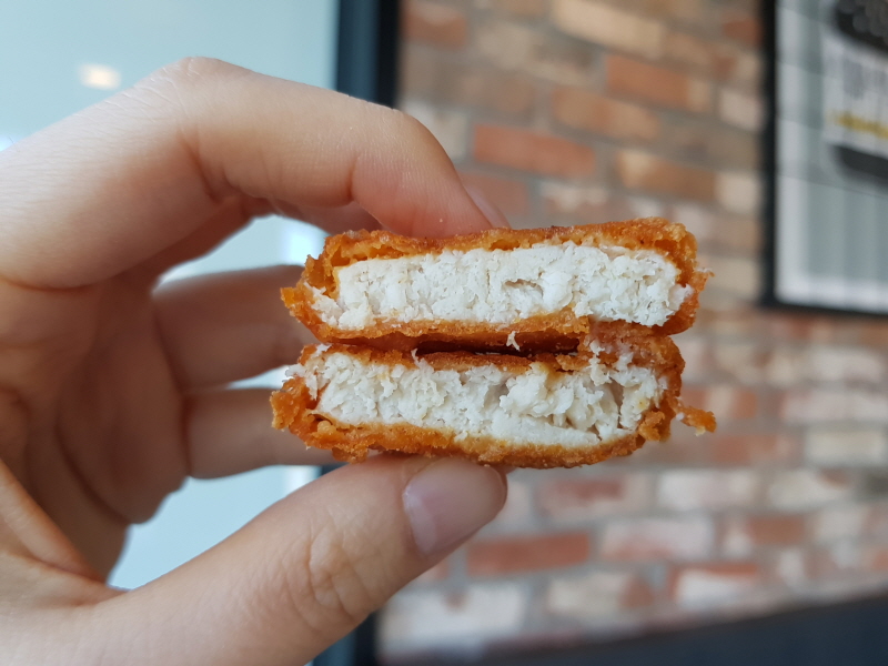 너겟을 입에 넣고 2번 정도 씹었을 때 매운맛이 은근히 올라왔어요.