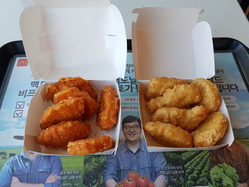 왼쪽이 스파이시 맥너겟, 오른쪽이 일반 맥너겟입니다.