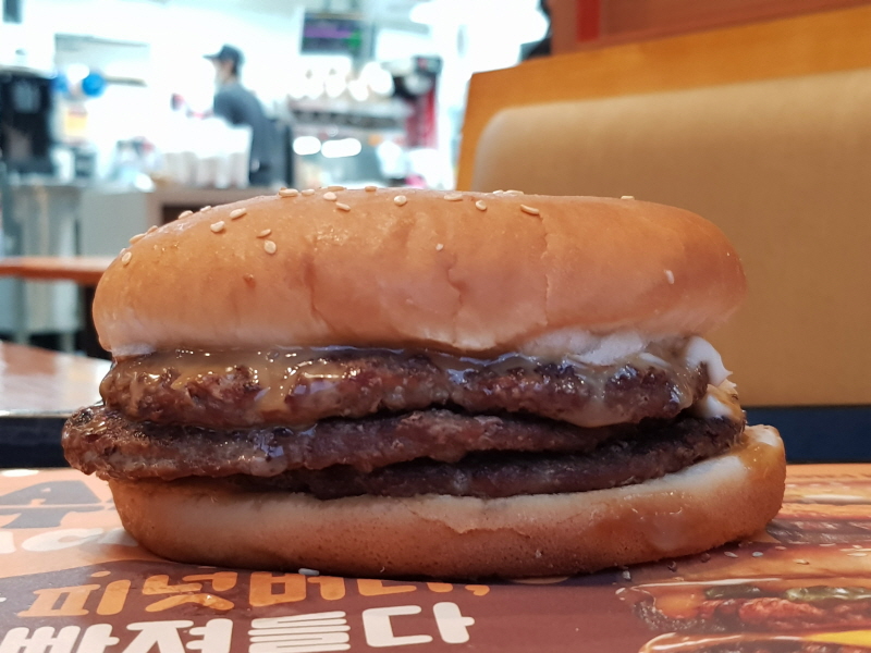 야채가 들어가지 않는 메뉴라서 더블패티에 비해서는 두께감이 있지는 않는 편이에요.