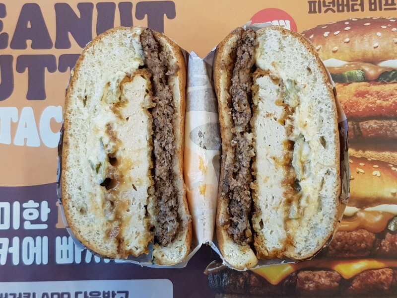 피넛버터 스태커는 패티만 추가되는 거 외에는 같은 구성의 메뉴이고, 사실상 피넛버터 스태커와 피넛버터 비프&치킨, 이렇게 2종의 버거가 나왔다고 볼 수 있겠네요.