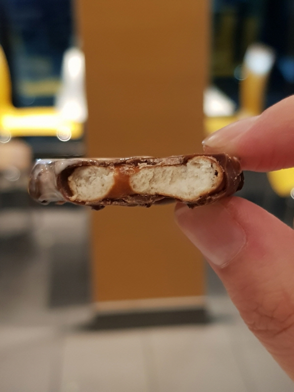 안에는 담백한 맛의 과자로 되어있고, 겉면은 초코 코팅이되어 있어서 몰티저스 먹는 맛이 나요.