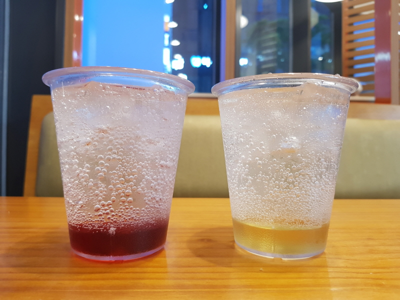시럽 자체가 단맛이 강하지 않은 편이고, 여기에 탄산수를 넣었기 때문에 별 생각없이 홀짝거리는 목적으로는 나쁘지 않더라구요.
