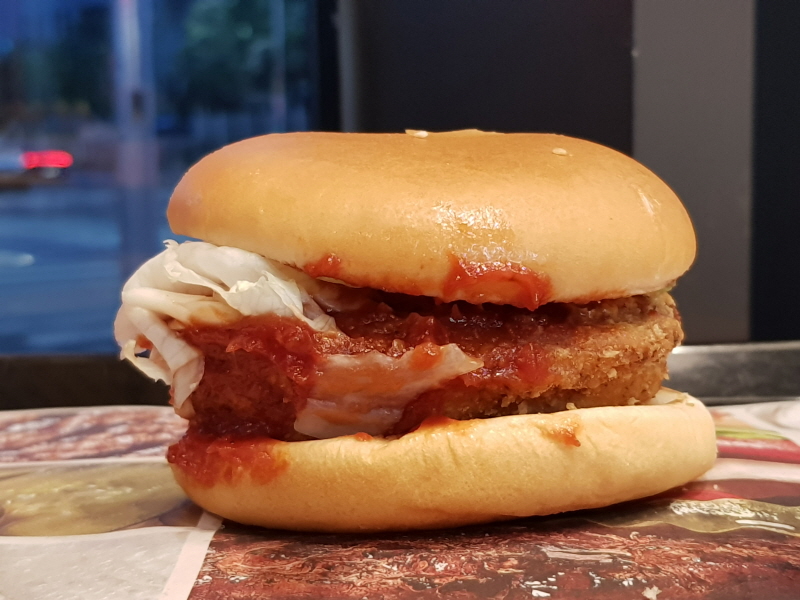 디아블로 소스의 매콤한 맛과 약간의 스모키함이 치킨패티와 어울려서 약간 숯불에 구운 거 같은 뉘앙스를 줘요.