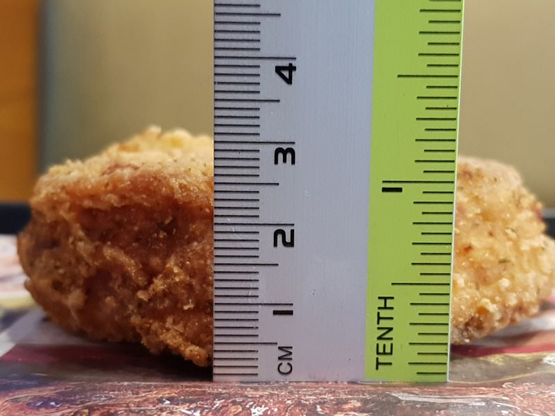 통살은 아니고 치킨 다짐육을 반죽해서 만든 것으로, 크고 두꺼운 너겟이라고 생각하시면 얼핏 맞을 거예요.