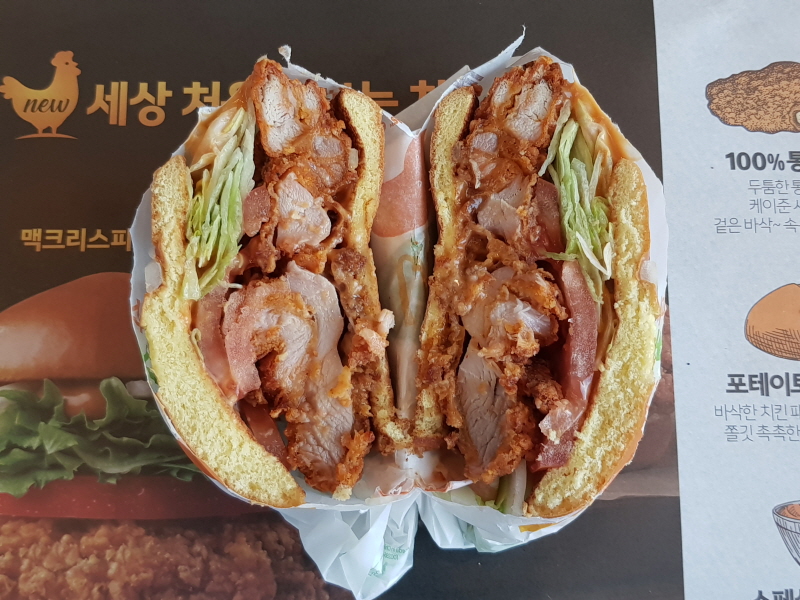 소스는 크리미한 계열로 조금 다르지만, 닭다리살 패티에 양상추, 토마토가 들어간 구성이 비슷해요.