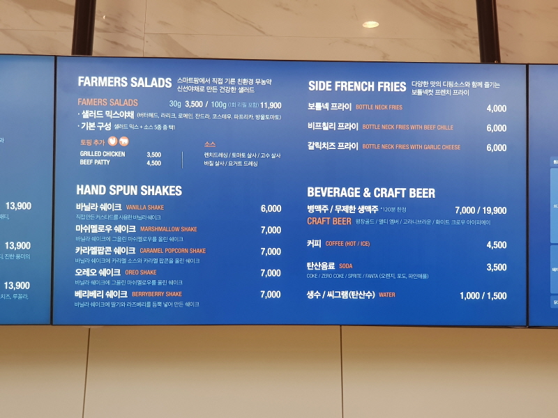 버거 하나만 시켜도 1만 3-4천원 금방이고, 여기에 음료나 사이드를 주문해서 세트 구성으로 먹으려면 최소 2만원은 잡아야겠더라구요.