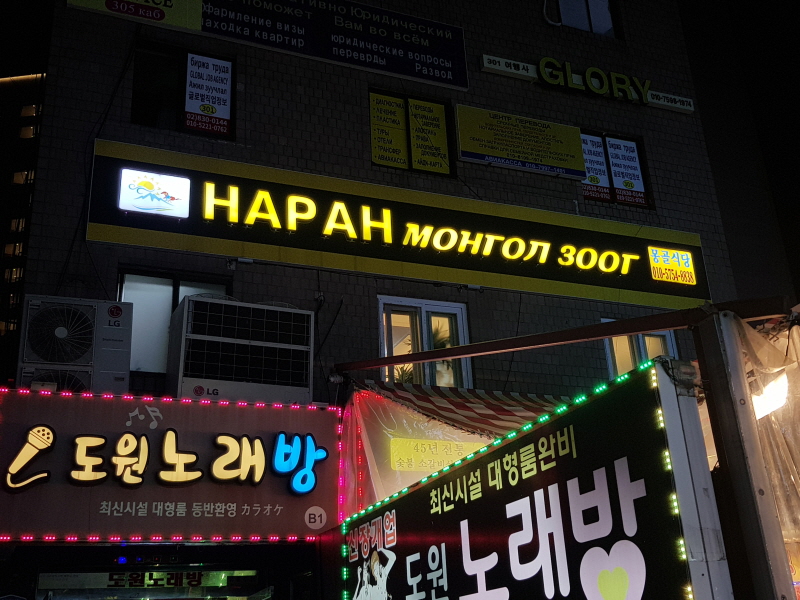 러시아와 우즈베키스탄, 카자흐스탄, 키르기즈스탄 등 중앙아시아 사람들이 모이는 지역인데, 여기에는 작게 몽골타운도 있어요.