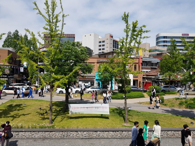 홍대입구역 3번 출구에서 약 100m, 걸어서 1-2분 정도 거리예요.