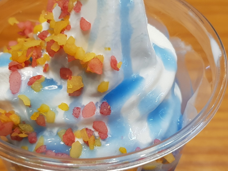 딸기시럽이나 초코시럽보다는 소다 시럽의 맛이 약한 편이라서 원하는 사람의 경우 시럽을 좀 더 뿌려줬으면 좋겠어요.