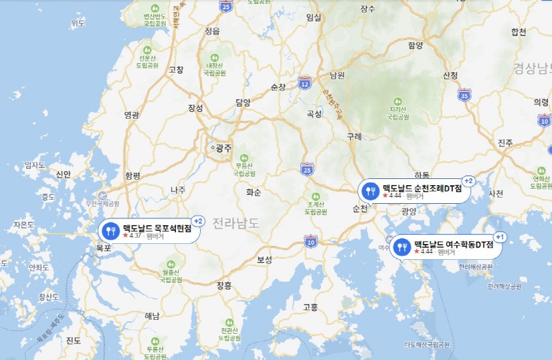 전라남도에서는 여수와 순천, 목포, 광양에만 맥도날드 매장이 있더라구요.