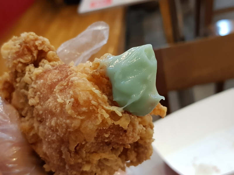 크리스피 치킨의 매콤한 맛과 민트의 화한 맛이 뭔가 참 언밸런스하더라구요.