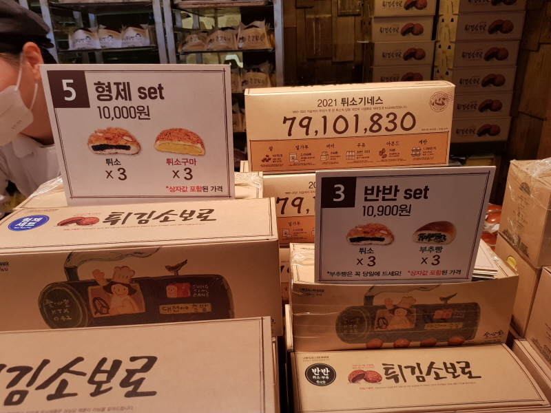 가족들에게 선물하고, 동료들과 간식으로 나눠먹을 생각으로 튀김 소보로를 여러 세트 구입했습니다.
