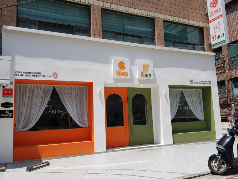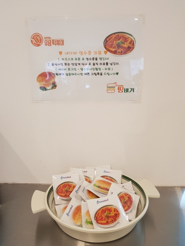 한 건물 안에서 왼쪽은 김천재의 유념떡볶이, 오른쪽은 김천재의 띵버거 매장을 같이 운영하고 있어요.