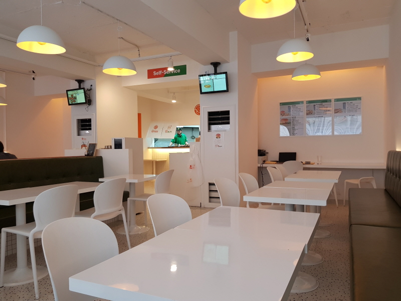 입구에 있는 키오스크에서 주문하고, 직접 가져다 먹고 치우는 셀프서비스로 운영됩니다.