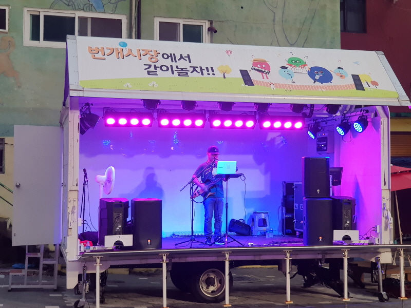 스피커로 틀어놓은 노래도 좋지만, 이런 라이브 공연이 더 축제분위기 나죠.