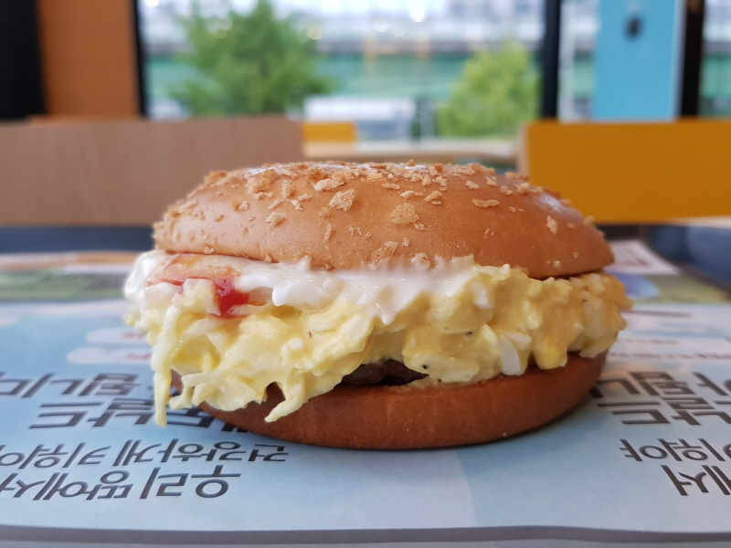 그래서 옛날 햄버거 스타일, 소위 말해서 빵집 햄버거나 미군부대 근처 햄버거를 모티브로 개발한 메뉴인 거 같아요.