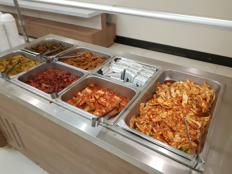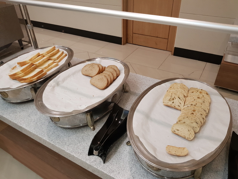 빵이 나오면 햄이나 치즈, 혹은 잼이나 버터 같은 게 같이 구비되어있기 마련인데 그런 것도 보이지 않았고, 한식 메뉴는 다 맵고 짠 음식들이 많아서 손이 잘 가지 않더라구요.