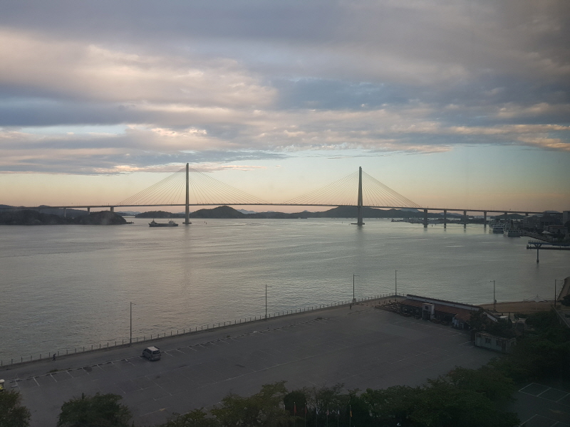 창 밖으로는 바다와 목포 대교가 시원하게 펼쳐집니다.
