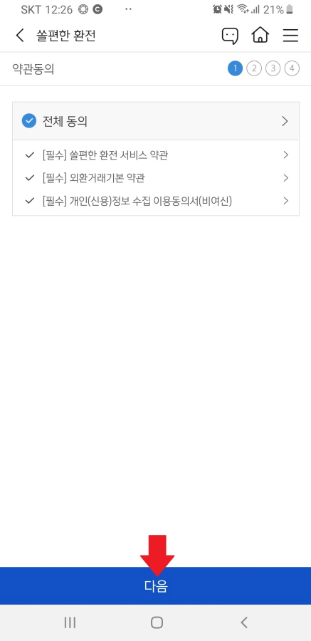 SOL 어플리케이션에서 환전 신청하는 순서는 다음과 같습니다.