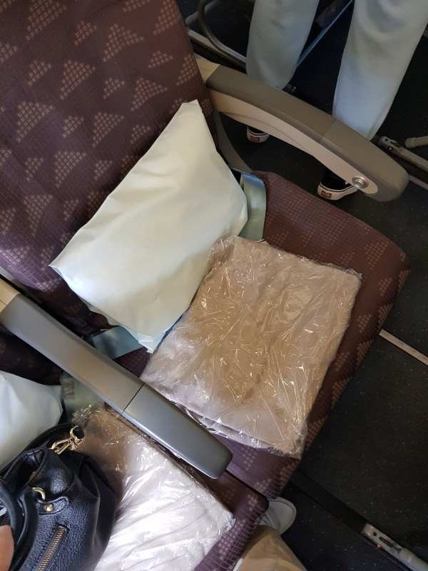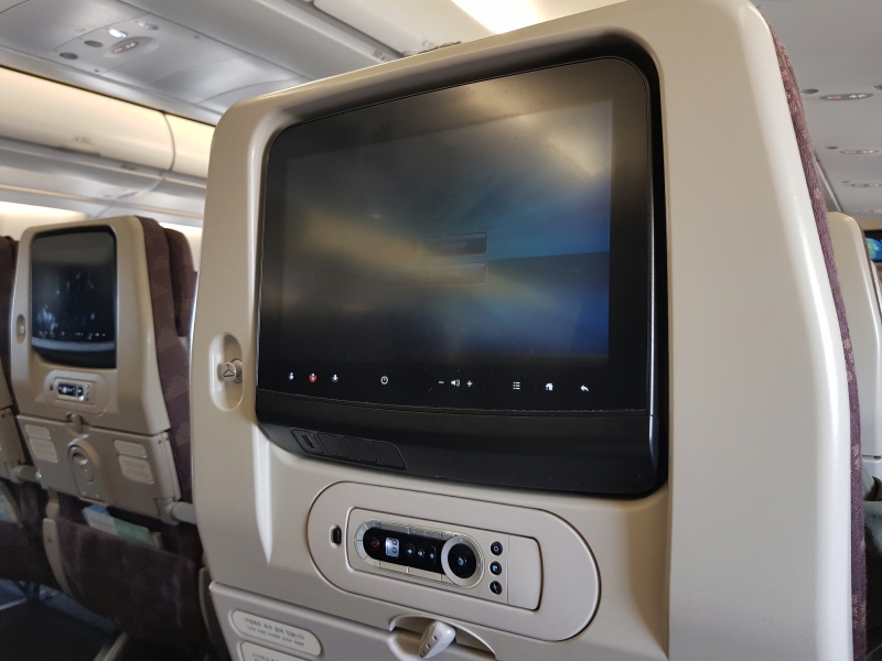 좌석마다 쿠션와 담요가 놓여져있으며, 개별 모니터입니다.