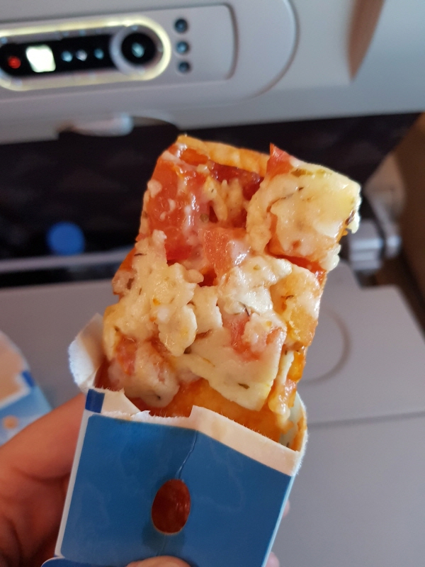 간식으로는 바나나와 피자 중 선택할 수 있는데, 저는 피자로 골랐습니다.