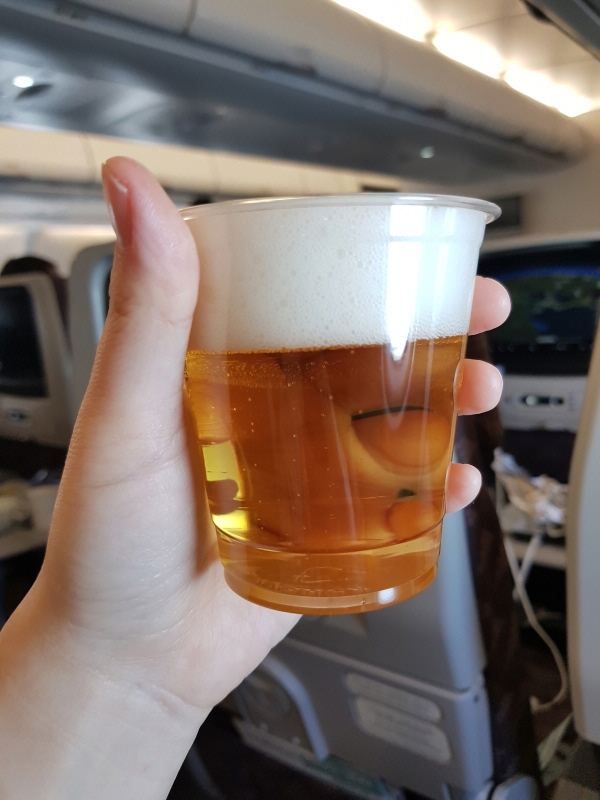버드와이저와 카스 중에서 선택이 가능했는데, 저는 버드와이저를 받았습니다.