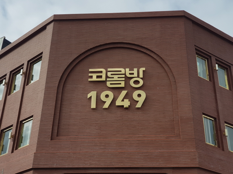 위에는 코롬방제과 1949 라고 큰 간판이 붙어있어요.