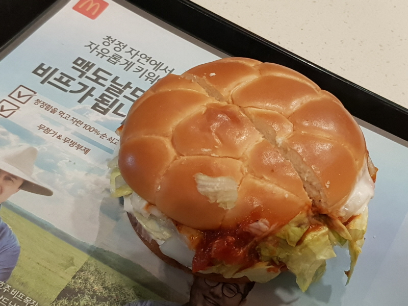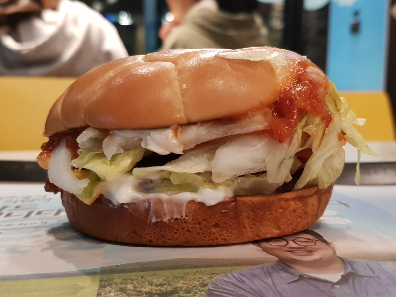 빅맥과 비슷한 크기인 거 같은데, 무게는 좀 더 묵직한 느낌이에요.