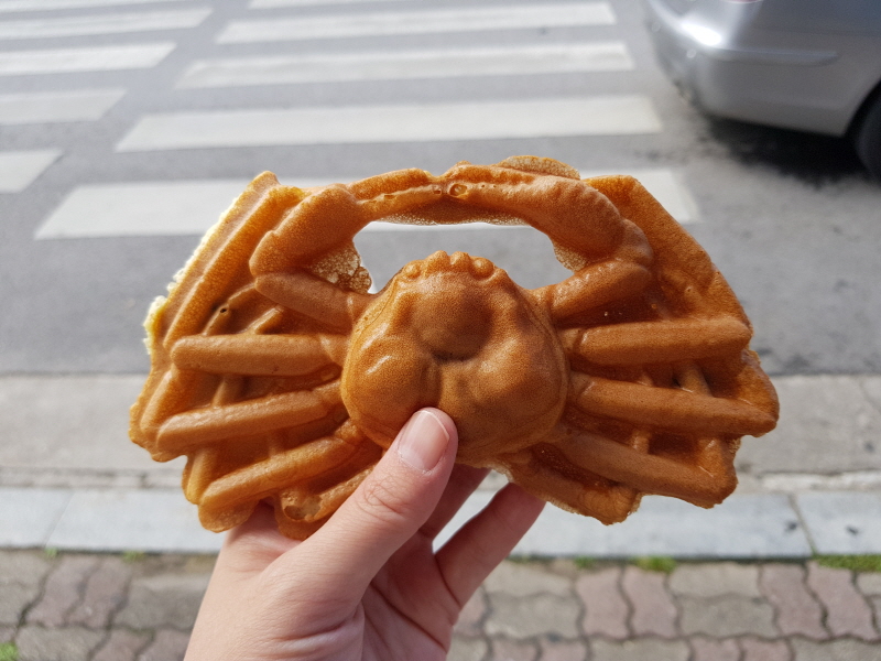 대게빵이라고 하는데, 모양이 대게인 붕어빵을 먹는 느낌이었어요.