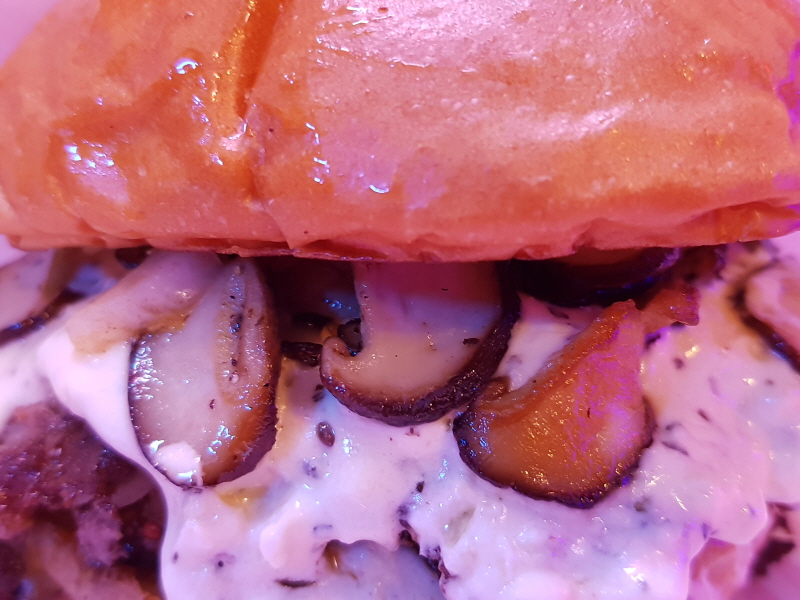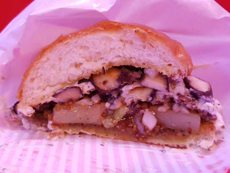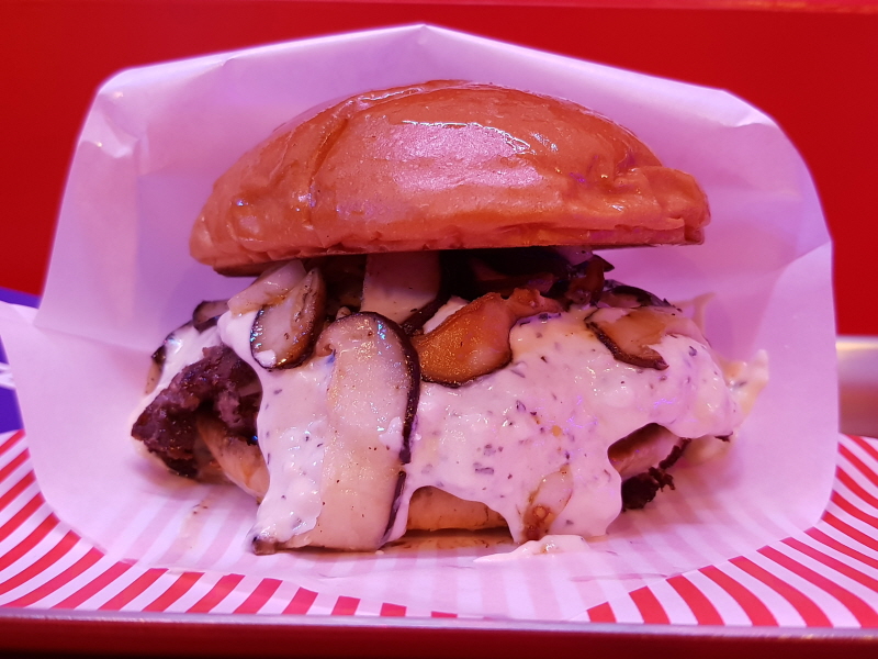 보통 버섯이 들어가는 버거에서는 양송이 버섯이나 새송이 버섯을 사용하고, 종종 팽이버섯을 넣는 경우도 있지만, 표고버섯이 들어간 건 처음 봤어요.