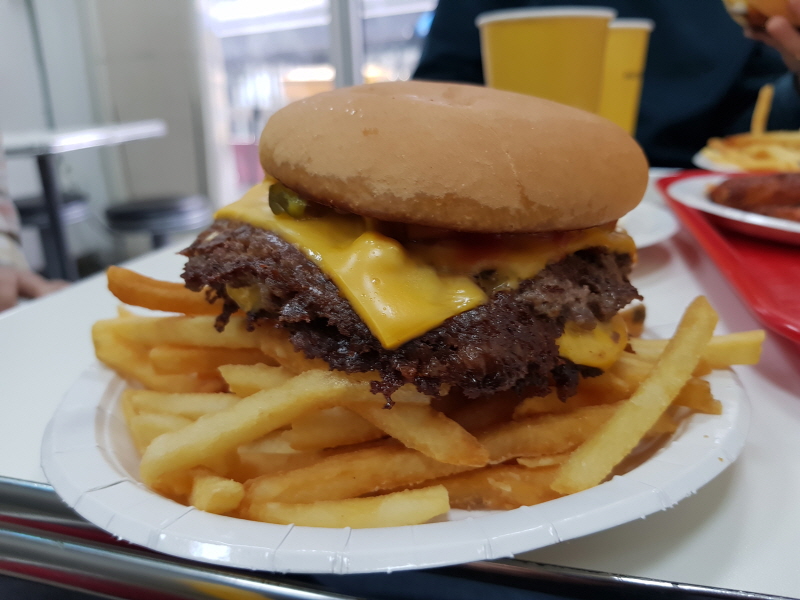 미국 냄새가 풀풀나는, 정말 찐득하게 기름지고 짜고 시고 자극적인 치즈버거를 선호하는 사람에게는 정말 이만한 데가 없을 거 같아요.