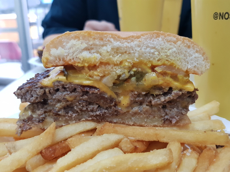노스트레스버거는 정말 찐 미국식! 노랑내가 풀풀나는! 치즈버거를 맛볼 수 있다고 유명해진 곳이에요.