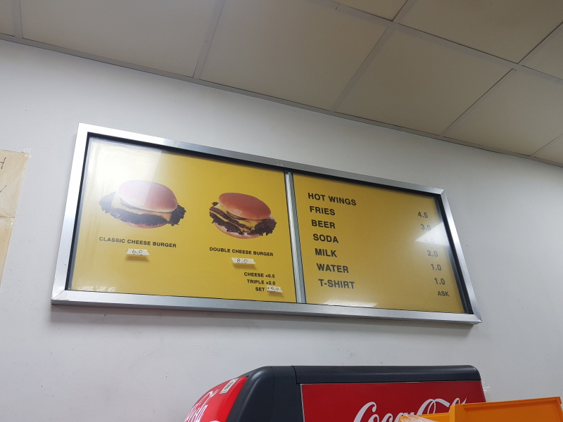 버거 메뉴는 '치즈버거', 딱 한 가지 뿐이에요.
