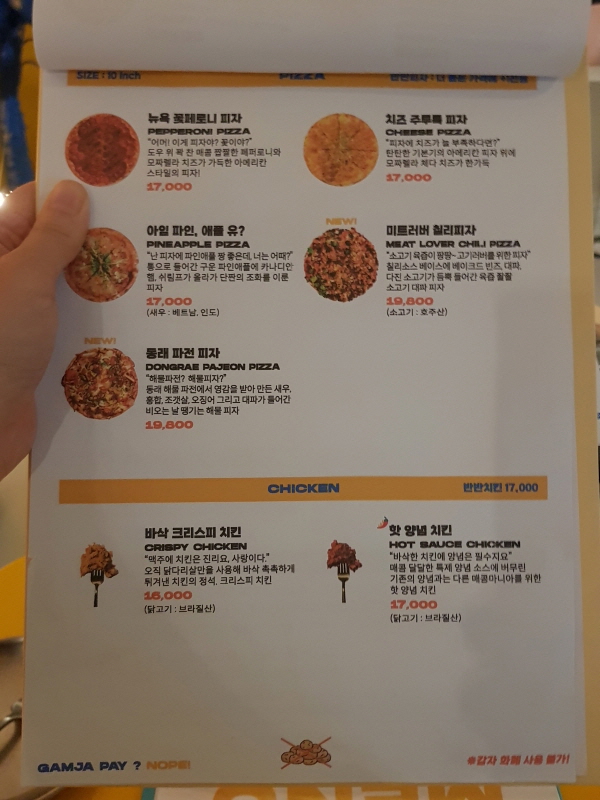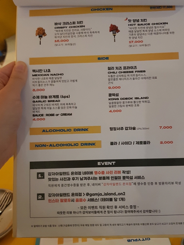 안주는 치킨, 피자, 프라이 종류 같은 전형적인 안주도 있지만, 감자를 활용한 시그니처 안주도 있습니다.