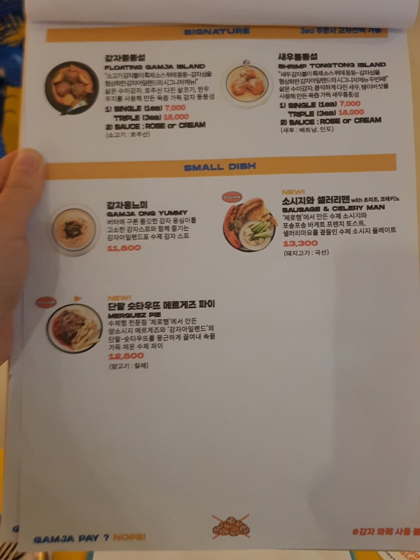 감자아일랜드 온의점 메뉴.